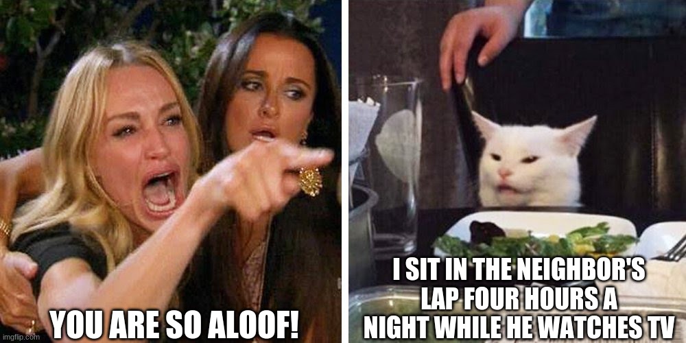 It turns out that people who think cats are aloof are often just bad people. So, now when someone says “cats are aloof,” I back slowly out of the room, walking backwards.